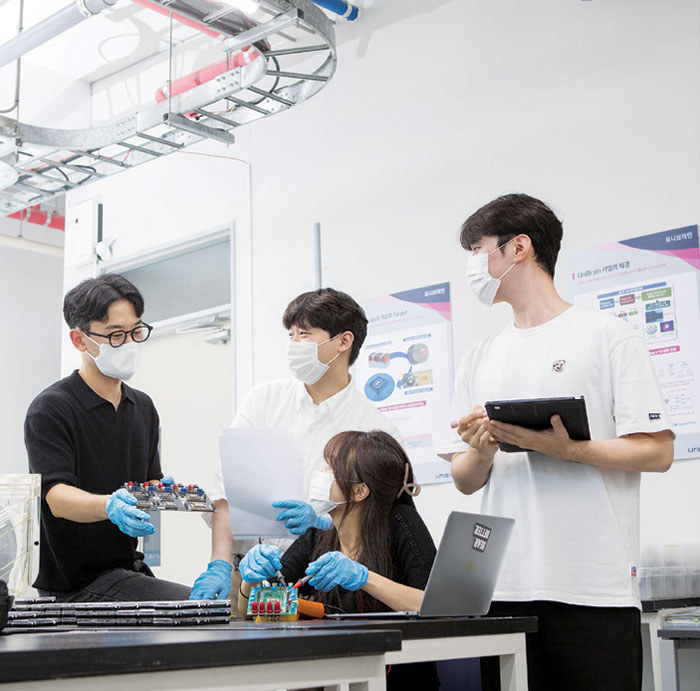 A. __ The purpose of electronic engineering is basically commercialization. It could be seen as pointless to develop a great new technology without any products brought to the market resulting from it. Because of that, we did not focus on simply the integration of large data volume but were concerned about how to reduce the size and noise. Up until now, IoT technology has just made electronic devices connected over the internet. However, ternary semiconductors is on track to advance to a stage where all electronic devices are connected with AI, which is called AIoT. For example, all components in not only self-driving cars but also smart and electronic vehicles can be made of semiconductors. As these semiconductors are interconnected to acquire and process information, the execution can be much faster. Multitasking is also now possible mimicking how a human can do many tasks in tandem. This is the true meaning of AI technology and the direction that Ternell likes to go.