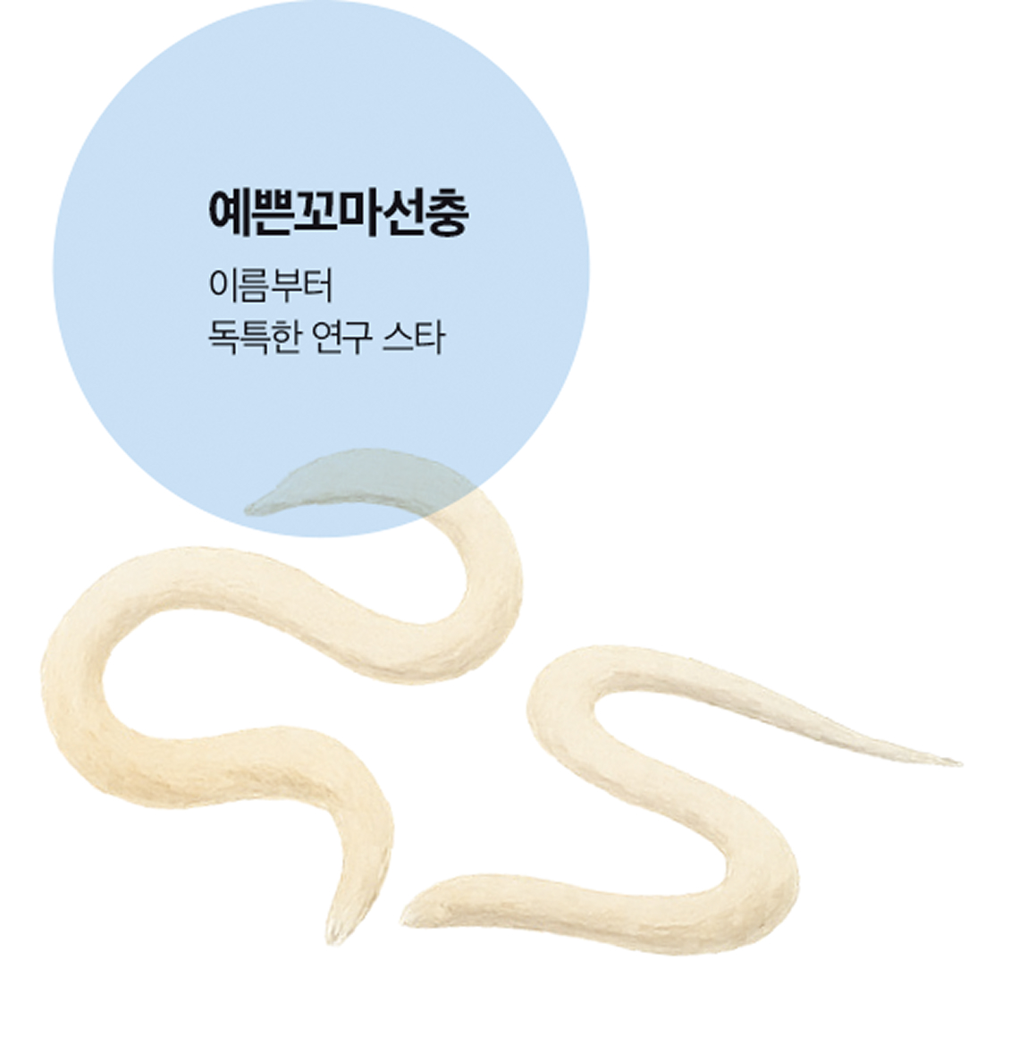 예쁜꼬마선충(Caenorhabditis elegans)은 이름만 들어도 궁금증이 생긴다. ‘elegans’는 라틴어로 ‘우아하다’라는 뜻인데, 우리말로는 ‘예쁜꼬마선충’이라 옮겨졌다. 생김새는 그다지 예쁘지도, 꼬마 같지도 않지만 이름 덕분에 한결 친근한 이미지다. 길이가 1mm도 되지 않는 이 벌레는 몸이 투명해 현미경으로 속을 훤히 들여다볼 수 있다. 무엇보다 놀라운 점은 몸속 세포 수가 성체 기준으로 딱 959개로 정해져 있다는 것이다. 과학자들은 이 작은 벌레의 세포 하나하나가 언제 생기고 언제 사라지는지, 모두 지도처럼 기록할 수 있었다. 덕분에 세포 자살(apoptosis), 그리고 RNA 간섭(RNAi) 같은 굵직굵직한 현상을 발견할 수 있었다. 오늘날에도 예쁜꼬마선충은 노화 연구와 신경망 연구의 대표 모델로 쓰이고 있다.