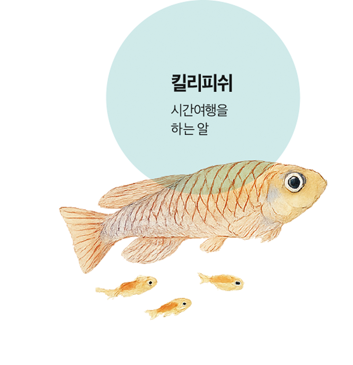 킬리피쉬는 독특한 생활사로도 유명하다. 이 물고기의 고향인 아프리카 모잠비크와 짐바브웨 일대는 건기와 우기가 뚜렷한데, 킬리피쉬의 알은 건기에 흙 속에 묻혀 휴면 상태로 몇 달을 버틸 수 있다. 비가 내려 다시 물웅덩이가 생기면, 멈춰 있던 시간이 다시 흐르듯 알이 깨어나 어린 물고기로 부화한다. 마치 알이 시간을 건너뛰는 듯한 이 생존 전략 덕분에 킬리피쉬는 ‘시간여행자 물고기(Time-traveling fish)’라고도 불린다.