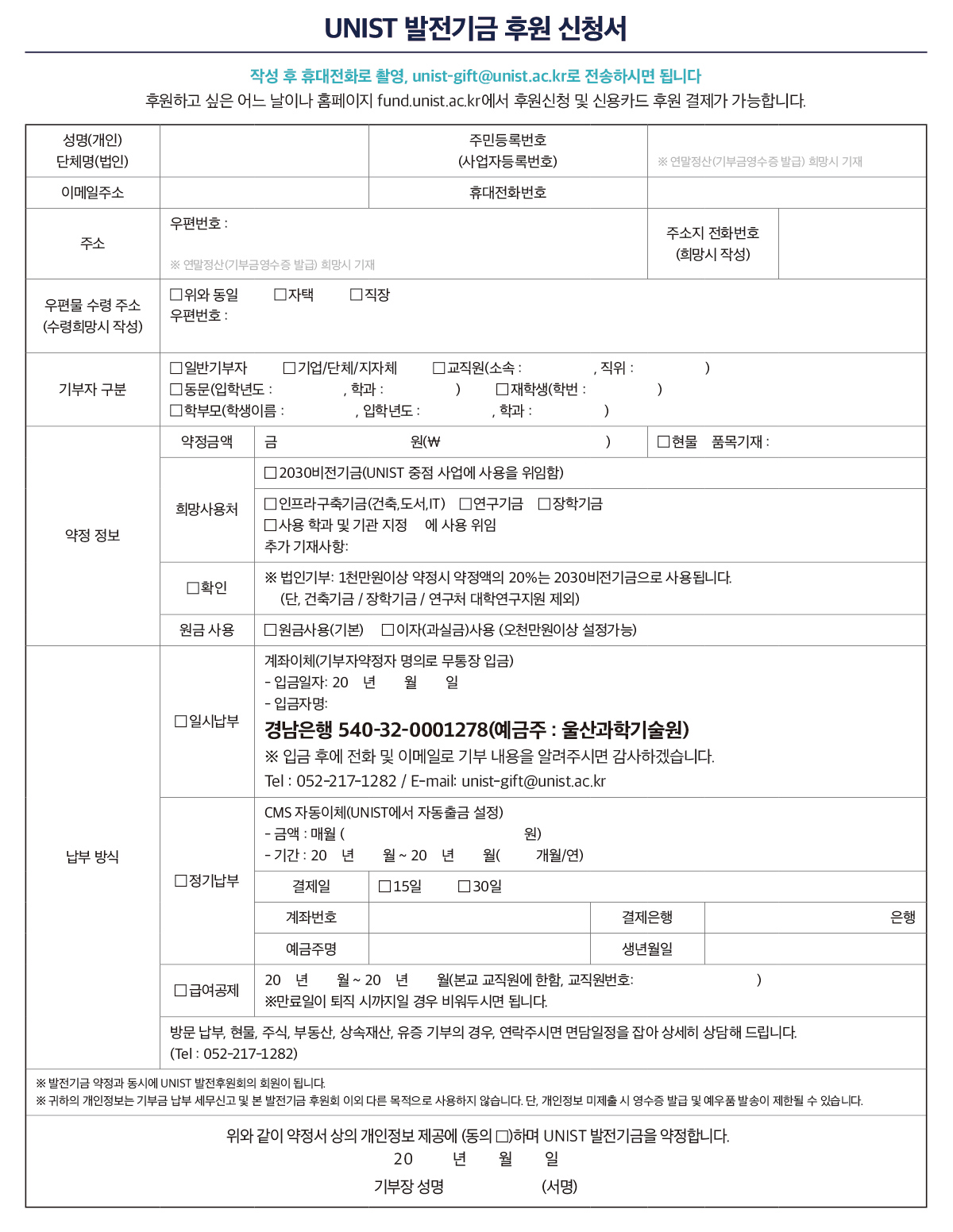미래를 향한 끝없는 도전을 위해, UNIST에 당신의 사랑을 전해주세요.
