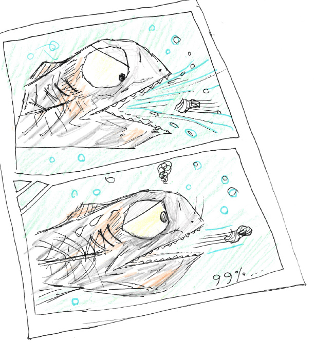 갓난 물고기의 99% 이상이 사망한다. 너무 많이 죽는 게 아니냐는 생각이 들다가도, 약육강식과 적자생존의 냉혹한 자연에서는 그럴 수도 있겠다는 생각이 든다. 하지만 이 죽음의 원인이 추위나 포식자 때문이 아니고, 먹이가 풍부한 실험 환경에서 굶어 죽은 것이라고 하면 고개가 갸우뚱해진다. 2014년 미국 국립과학원 회보(PNAS)에 “Hydrodynamic starvation in first-feeding larval fishes”라는 연구 결과를 발표한 이스라엘 텔아비브 대학교의 빅터 차이나(Victor China)와 로이 홀츠만(Roi Holzman)은 그 원인으로 ‘물’을 지목했다. 아기 물고기는 먹이 근처에 오면 입을 벌려 먹이를 입 쪽으로 빨아들인다. 그런데 먹이를 먹기 위해 입을 닫으면, 그 먹이는 빨려 들어온 길로 다시 빠져나간다. 마치 비디오를 거꾸로 감는 것처럼 말이다. 입을 열고닫기를 몇 번 반복해도 마찬가지다. 먹이는 왔다 갔다만 할 뿐 뱃속으로 들어오지 않는다. 먹이가 이빨에 걸리거나, 옆을 지나가는 다른 물고기가 먹이를 밀어주는 것과 같은 행운이 따르지 않는다면 말이다.